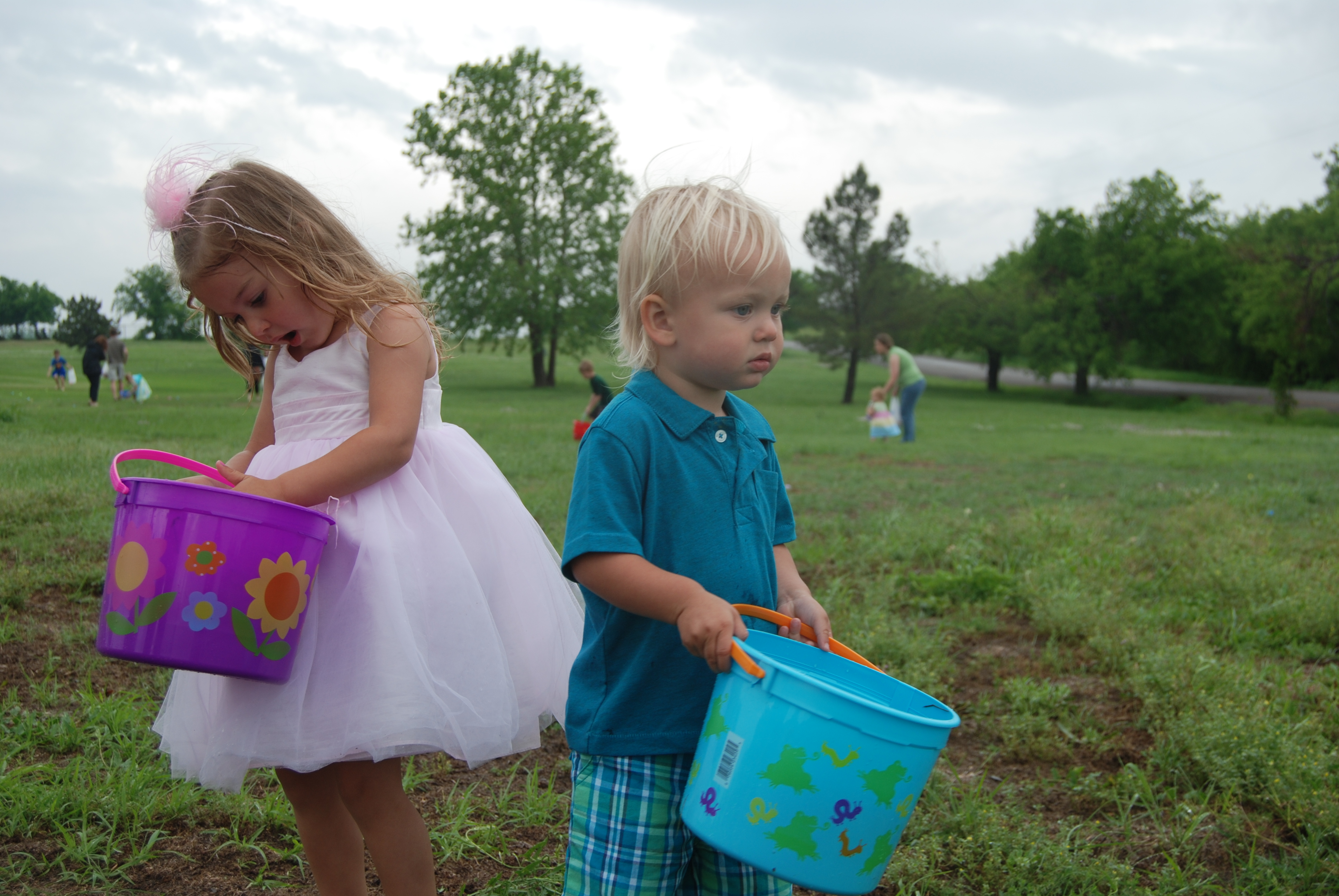And then of course it was Easter weekend, so there were eggs to be hunted. We went to my Aunt Nelda and Uncle Tommy’s house. There was a crazy storm, but after it passed, a bunch of kids ran out and scooped up lifetimes worth of sugar. Reese is pretty hung up on the color pink, so for the first 30 seconds or so, she was only looking for pink eggs, but she’s a smart little monster, so she quickly abandoned her aesthetic preferences for cold, hard logic and made out like an Easter bandit. Hudson did alright, too. It was a really good weekend.